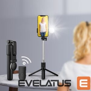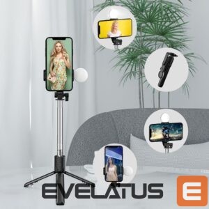 Kaameratarvik Hurtel Selfie stick WR1YXS telescopic tripod 0.71m with round lamp – black
