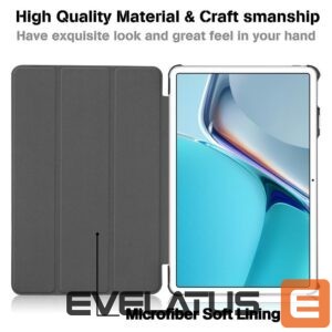 This elegant case is made from the highest quality eco-leather, which is not only durable but also pleasant to the touch, giving your tablet a sophisticated and professional look. Its slim and lightweight design ensures that the tablet retains its original form and is easy to carry. Inside, the soft microfiber lining gently protects the screen from scratches, while the hard PU leather back cover guarantees additional protection against impacts. The case is designed to provide a comfortable grip and everyday user comfort.