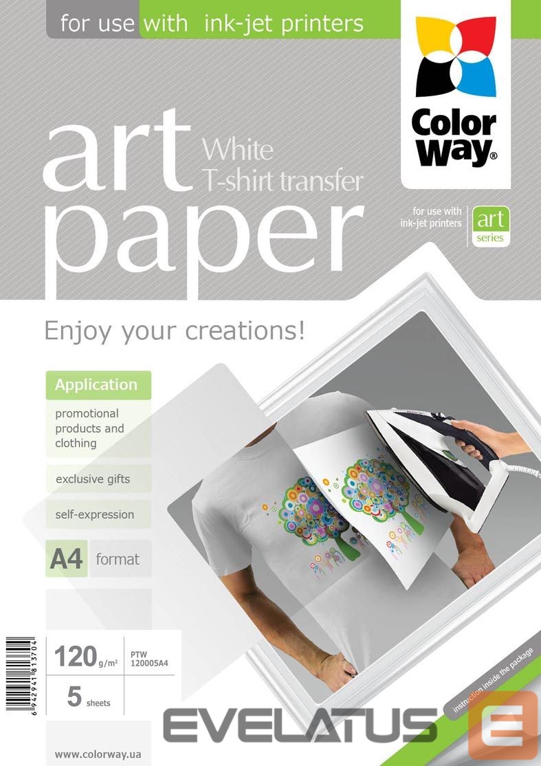 Kontoritarbed ColorWay ART Photo Paper T-shirt transfer (white), 5 sheets, A4, 120 g/m²