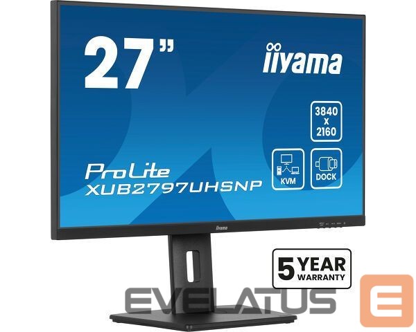 IIYAMA XUB2797UHSNP-B1 27inch IPS UHD 350cd/m2 4ms 15cm height adj. Stand HDMI DP USB-C Dock LAN Speakers