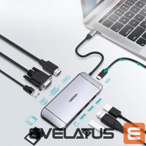 Muu arvutitarvik Choetech Choetech 9in1 multifunctional USB Type C HUB – 3x USB 3.2 Gen 1 / SD and TF memory card reader / HDMI 4K 30Hz / VGA Full HD 60Hz / USB Type C / RJ45 gray (HUB-M15 gray)