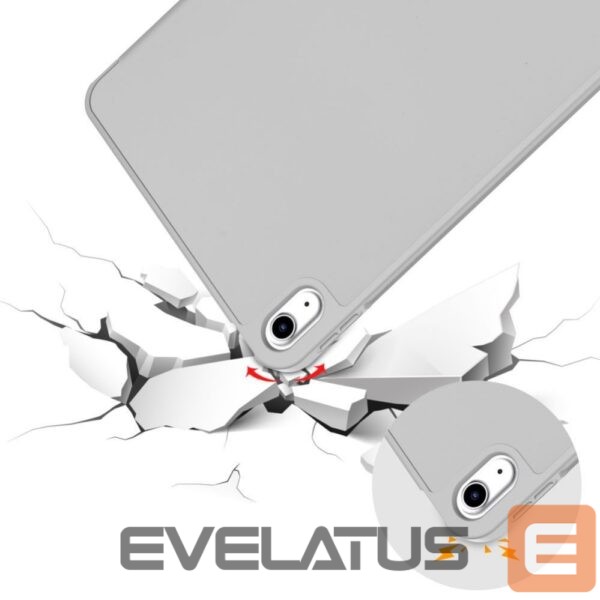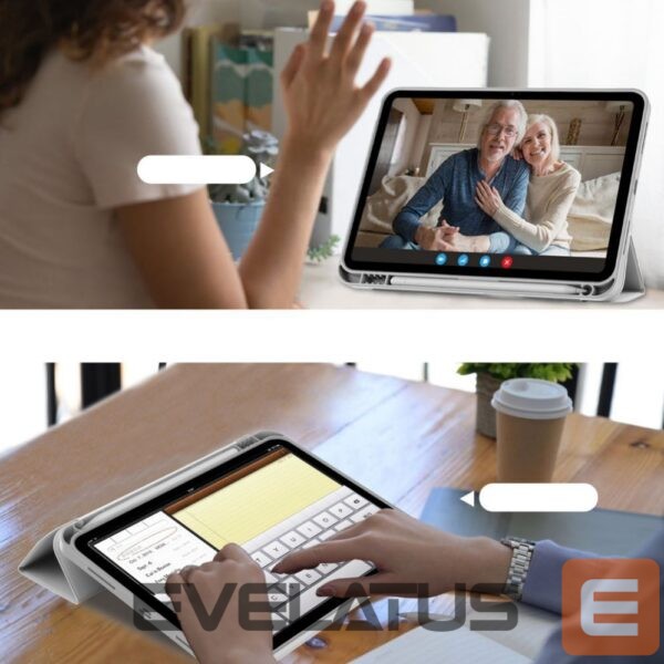 Thanks to the use of a concertina cover on the front side of the case, we gain protection for the display, and thanks to the technology of waking up and putting the device to sleep, we can ensure a slightly longer battery life. The case can also serve as a stand for more convenient use of the device.