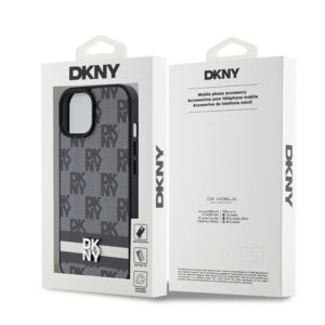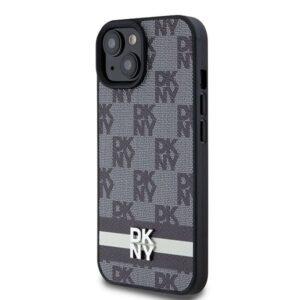 Muu telefoni lisavarustus DKNY DKNY Leather Checkered Mono Pattern & Printed Stripes Case for iPhone 15/14/13 – Black