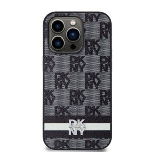 Muu telefoni lisavarustus DKNY DKNY Leather Checkered Mono Pattern & Printed Stripes iPhone 14 Pro Case – Black