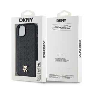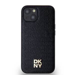 Muu telefoni lisavarustus DKNY DKNY Leather Monogram Pattern Metal Logo MagSafe Case for iPhone 15/14/13 – Black