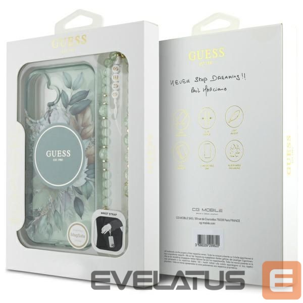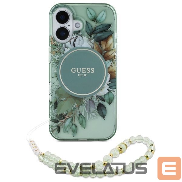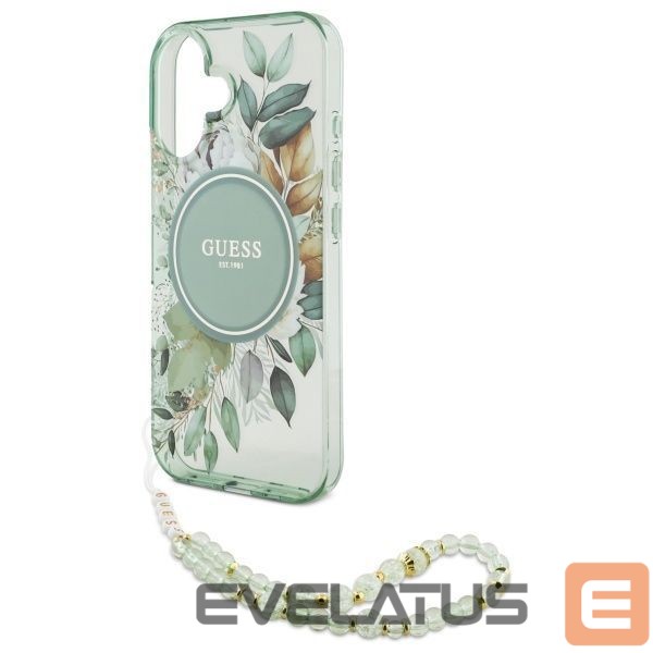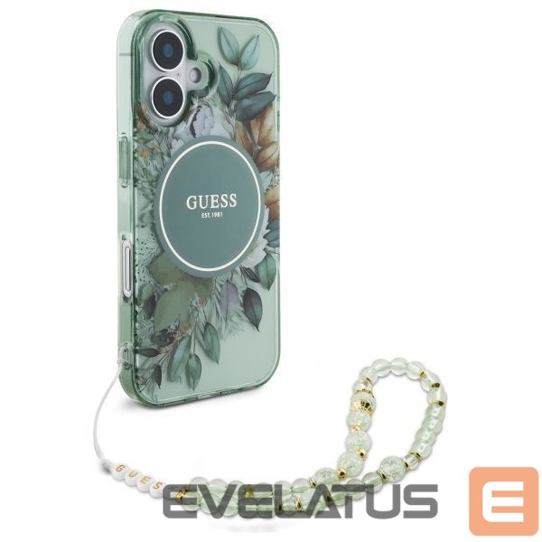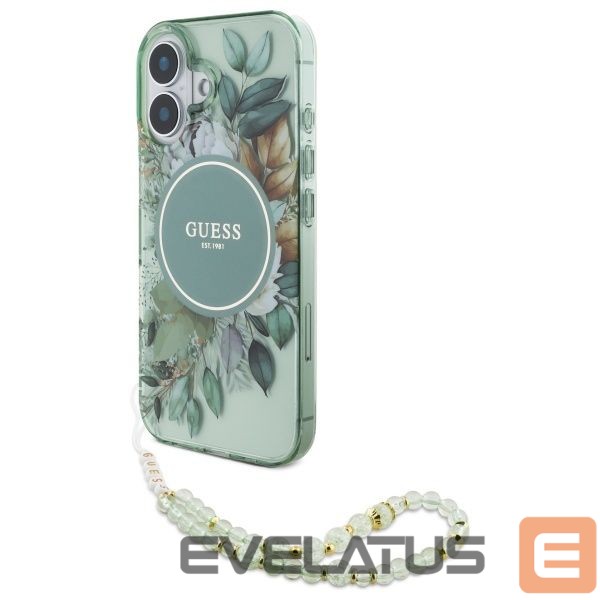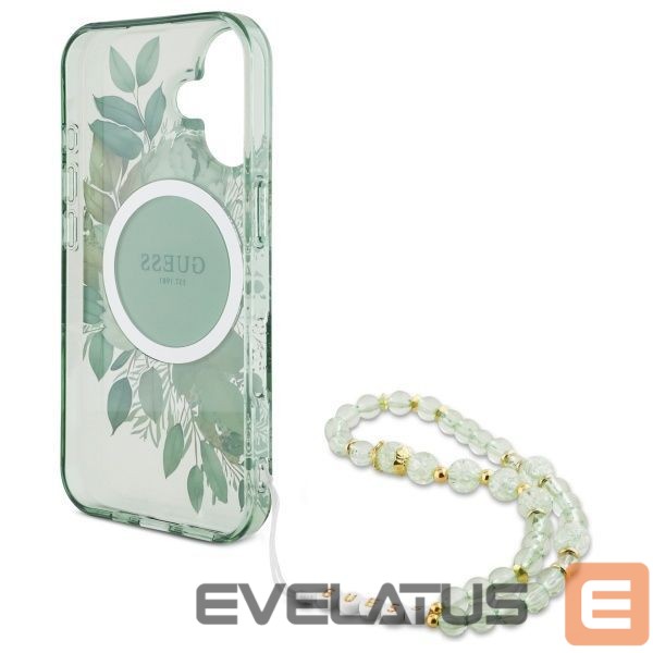 Muu telefoni lisavarustus Guess Guess IML Flowers With Pearl Strap MagSafe case for iPhone 16 Plus – green