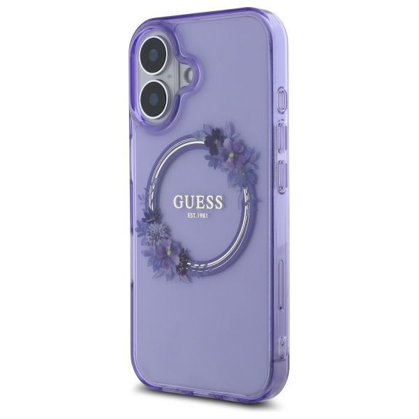 Muu telefoni lisavarustus Guess Guess IML Flowers Wreath MagSafe iPhone 16 Case – Purple