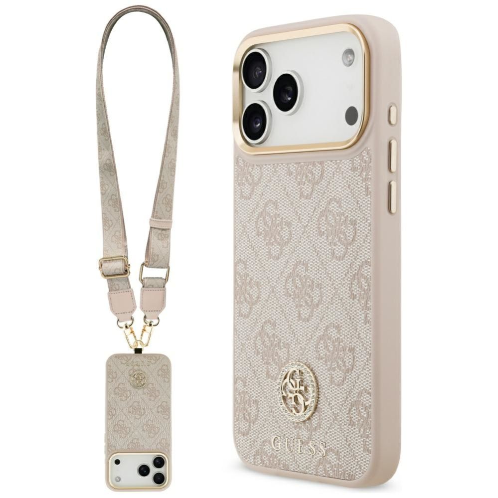 Muud kaubad Guess Guess 4G Strass Logo & Big Strap Metal Buttons MagSafe Case for iPhone 17 Pro Max – Pink