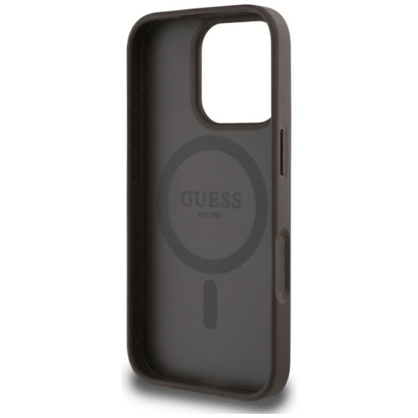 Muud kaubad Guess Guess Grained Hot Stamp Peony Triangle Logo MagSafe iPhone 16 Pro Max Case – Brown