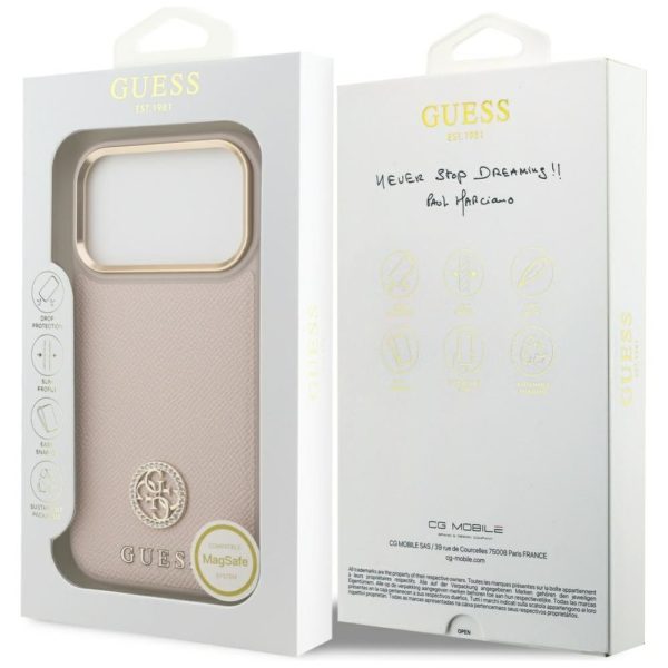 Muud kaubad Guess Guess Grained Strass Logo MagSafe case for iPhone 17 Pro – pink
