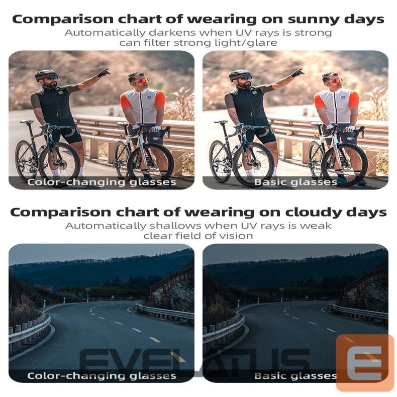 Rockbros green photochromic cycling glasses are the perfect choice for any active two-wheeler enthusiast. Designed with maximum comfort and protection in mind, they combine functionality, style and modern technologies. Thanks to photochromic lenses that intelligently adapt to changing light conditions, you gain full visibility and riding comfort regardless of the weather. The built-in frame for myopia allows people with visual impairments to use the glasses. The UV400 filter effectively protects the eyes from UVA and UVB radiation, and the lightweight TR90 frames provide comfort even on long routes. The large, highly resistant lens not only protects against wind and dust, but also adds style. Rockbros is a combination of comfort, durability and modernity – ideal for cycling, running or hiking.