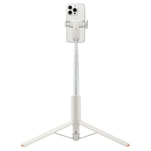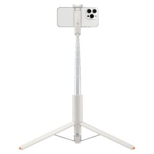 Thanks to the detachable Bluetooth remote control with included battery, you can conveniently take photos remotely, without having to touch the device. An innovative feature is the automatically extending tripod – the legs extend automatically when the stick is gently dropped on the ground, making it easy to quickly switch from selfie to tripod mode.