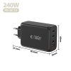 The Tech-Protect NC240W-GAN AC Charger is an advanced device utilizing GaN (gallium nitride) technology, offering 240W of power in a compact package. With four charging ports, you can simultaneously power your laptop, tablet, smartphone, and additional accessories at full capacity.