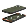 UAG Civilian THE STRONGEST OF THE STRONGEST HYPERCRUSH Civilian belongs to the group of the most powerful series of the UAG brand. This is a series of housings distinguished by the special HyperCuch feature. HyperCrush is an effect obtained by combining TPU with polycarbonate. A hexagon pattern was formed on the surface of both materials. The resulting structure creates an armored exoskeleton that dissipates the energy generated when the phone collides with the surface. 100% resistant to the effects of iPhone falls from a height of up to 6 m! compatible with wireless charging and MagSafe MAGSAFE Thanks to the magnetic module built into the case, Monarch is compatible with Apple Pay payments and MagSafe functionality. MagSafe ensures your phone is accurately positioned at the charging point on the wireless charger. All you have to do is place your phone against the charger matrix, and both devices will attract and adjust perfectly to each other, ensuring stable charging. PORTS AND BUTTONS The buttons and mute switch on the phone are protected against dust by precisely designed, movable housing elements that ensure comfortable use of the phone's functions. CERTIFIED PROTECTION Compliance with the MIL STD 810G 516.6 military standard, specifying the degree of shock resistance in the event of a fall.