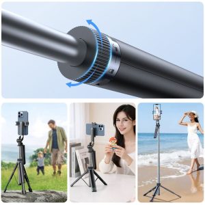 - Konstrukcja 2w1: selfie stick i statyw w jednym urządzeniu.