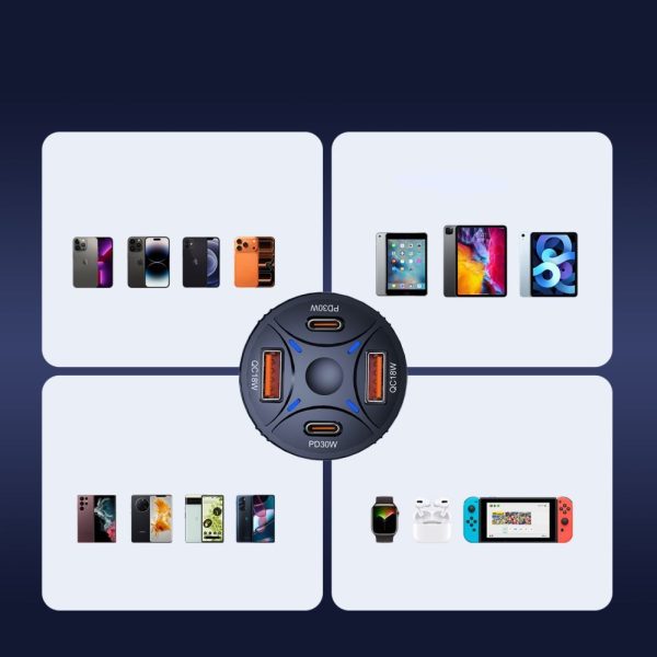 - Four charging ports: allows you to power multiple devices in your car simultaneously.