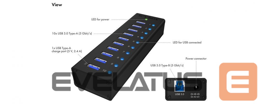 Ruuterid Raidsonic 10 port USB 3.0 Hub Icy Box IB-AC6110 Black