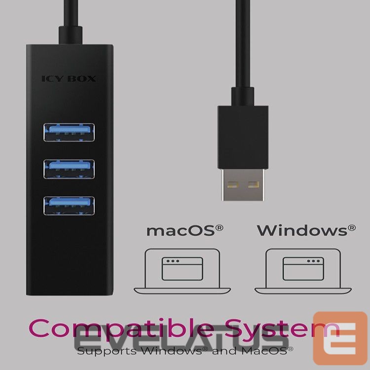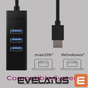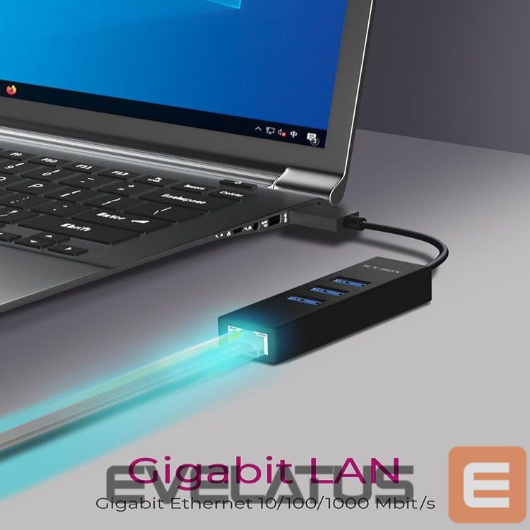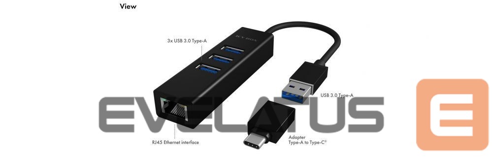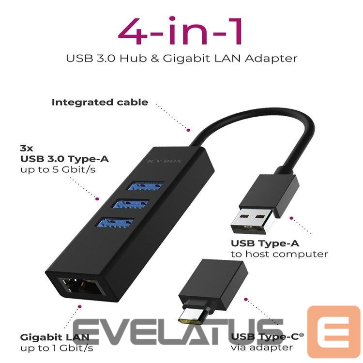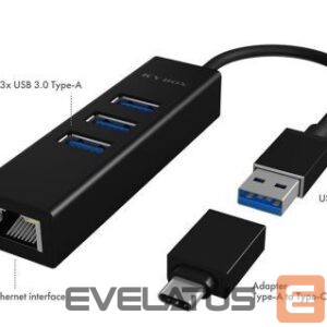 Ruuterid Raidsonic 4 Port Hub with USB 3.0 Type-A, Type-C, Gigabit LAN Icy Box IB-HUB1419-LAN Black