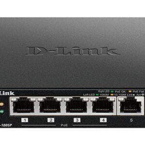 Server – muud tarvikud D-link Switch DGS-1005P Unmanaged, Desktop, 1 Gbps (RJ-45) ports quantity 5, PoE ports quantity 4, Power supply type External