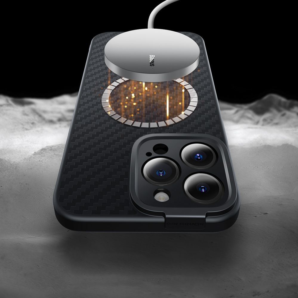 Tagakaaned Baseus Armored case for iPhone 14 Pro compatible with MagSafe Baseus Synthetic Fiber tempered glass – black