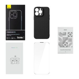 Baseus Synthetic Fiber iPhone 14 Pro Case + Black Tempered Glass