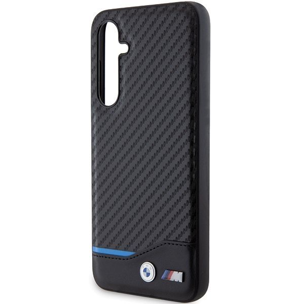 The top of the cases from the Leather Carbon collection is covered with carbon fabric and natural leather, which gives your iPhone a unique and unusual look. BMW is known and appreciated for its elegant designs and exquisite finishes, which are perfectly showcased in this collection of protective cases. The cover is additionally decorated with blue stitching, which is an integral color with the colors of the BMW brand. Delicate leather, a unique carbon fabric motif and stylish details make the collection give all devices a classic, elegant shape. The whole is topped with a small metal BMW and M package logo, which also confirms the highest quality and authenticity of the product.