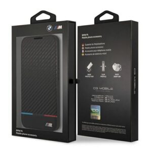 Ekskluzywne etui BMW z serii M Collection . Etui typu bookcase wykonane z połączenia termoplastycznego poliuretanu i syntetycznego karbonu.