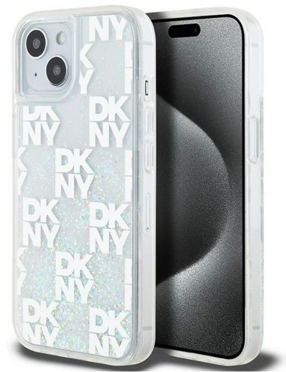 Tagakaaned DKNY Apple iPhone 15 hardcase Liquid Glitter Multilogo White
