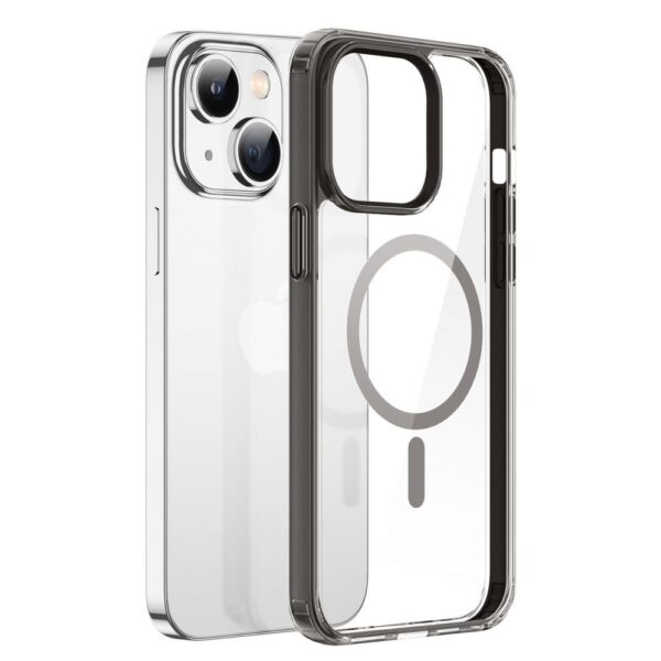 Magnetic case for iPhone 14 Plus with MagSafe with a gray frame