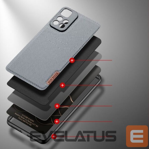 Fino is a series of elegant phone covers, designed by the Dux Ducis brand. The case is made of resistant polycarbonate with a soft TPU edge, a built-in PVC layer and a nylon fabric that guarantees a firm grip. The material is resistant to dirt, fingerprints are not formed on it. Raised rims around the display and lens prevent scratching.