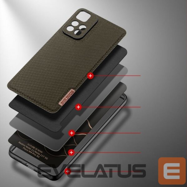 Fino is a series of elegant phone covers, designed by the Dux Ducis brand. The case is made of resistant polycarbonate with a soft TPU edge, a built-in PVC layer and a nylon fabric that guarantees a firm grip. The material is resistant to dirt, fingerprints are not formed on it. Raised rims around the display and lens prevent scratching.