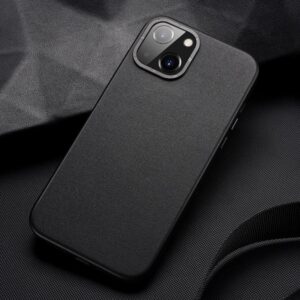 Tagakaaned Dux Ducis Dux Ducis Grit Leather Case for iPhone 14 Plus Elegant Faux Leather Cover (MagSafe Compatible) Black