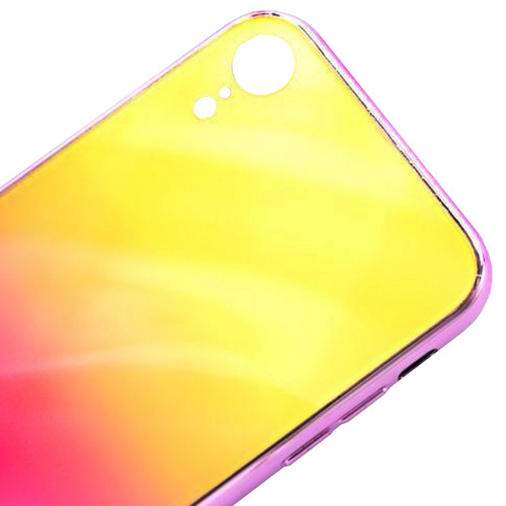 Tagakaaned Evelatus Apple iPhone XR Water Ripple Gradient Color Anti-Explosion Tempered Glass Case Gradient Yellow-Pink