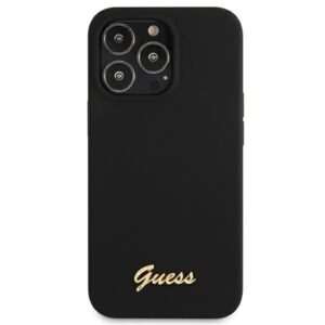 Tagakaaned Guess Guess GUHMP13LLSLMGBK iPhone 13 Pro / 13 6.1" black/black hardcase Silicone Script Gold Logo MagSafe