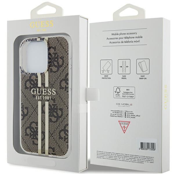 Tagakaaned Guess Guess IML 4G Gold Stripe case for iPhone 15 Pro Max – brown