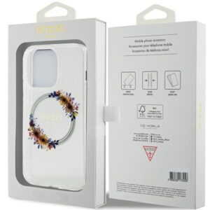 Tagakaaned Guess Guess IML Flowers Wreatch MagSafe case for iPhone 15 Pro – transparent