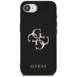 Tagakaaned Guess Guess PU Grained 4G Metal Logo case for iPhone 16e – black