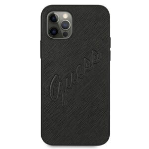 Tagakaaned Guess Guess Saffiano Vintage Script Case for iPhone 12 Pro Max 6.7" – Black