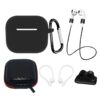 AirPods 3 Silicone Case Set with Carabiner, Case, Neck Strap, Temples, Headphone Watch Strap Holder Black