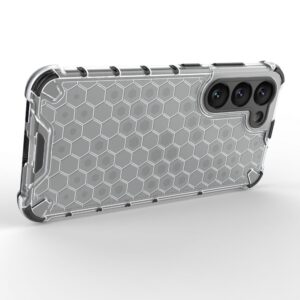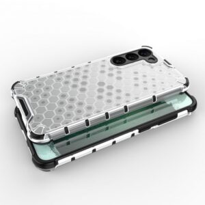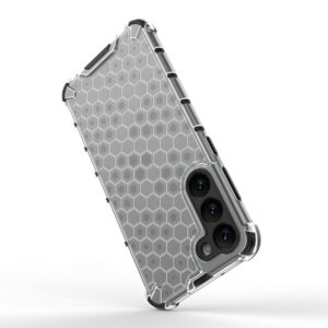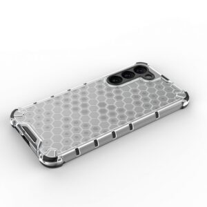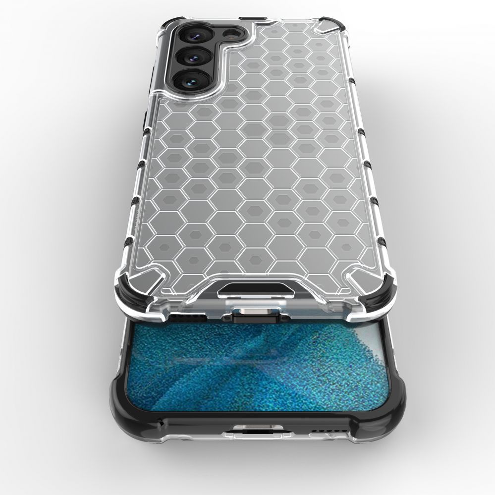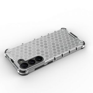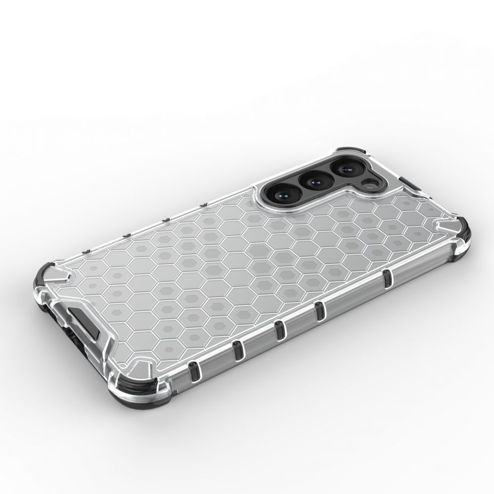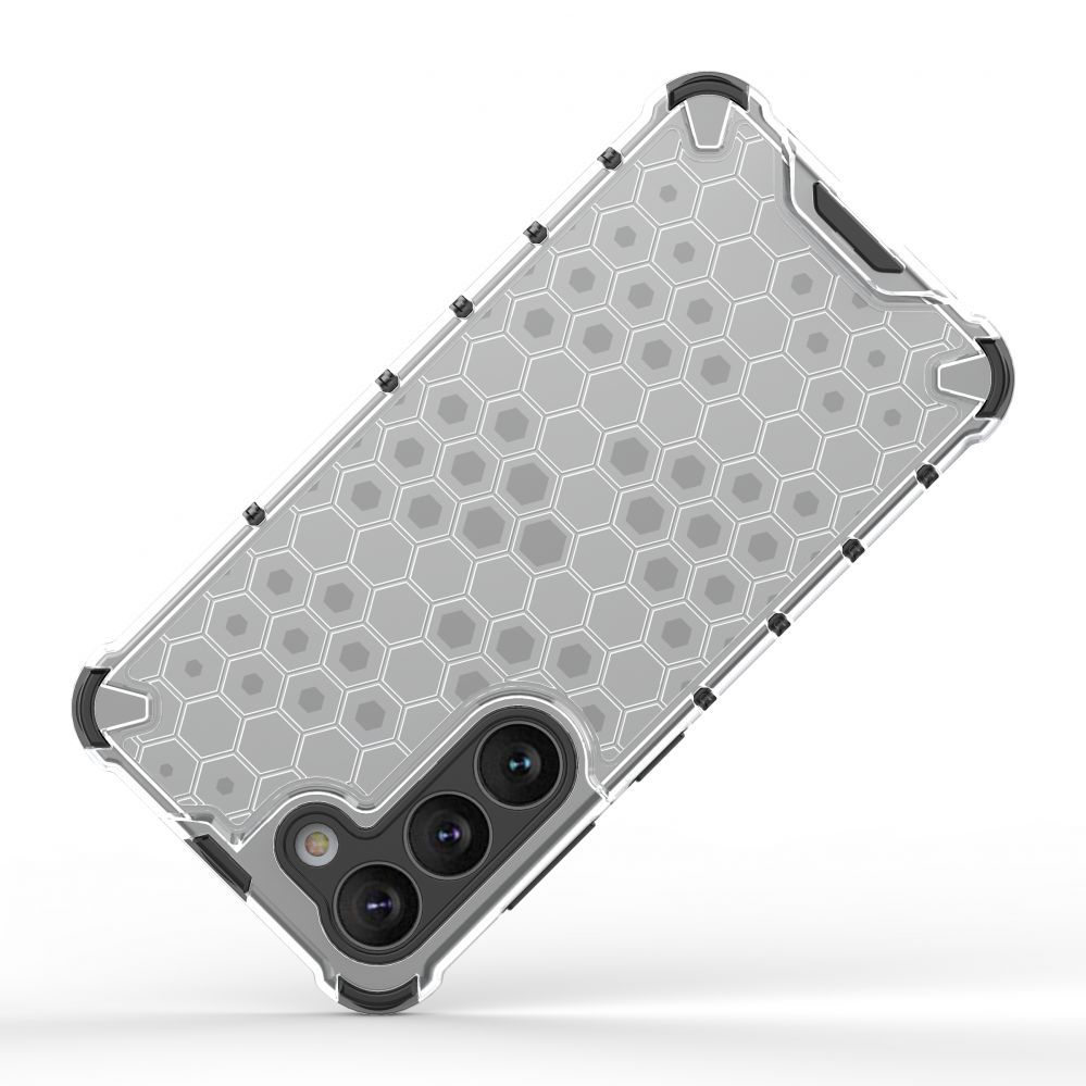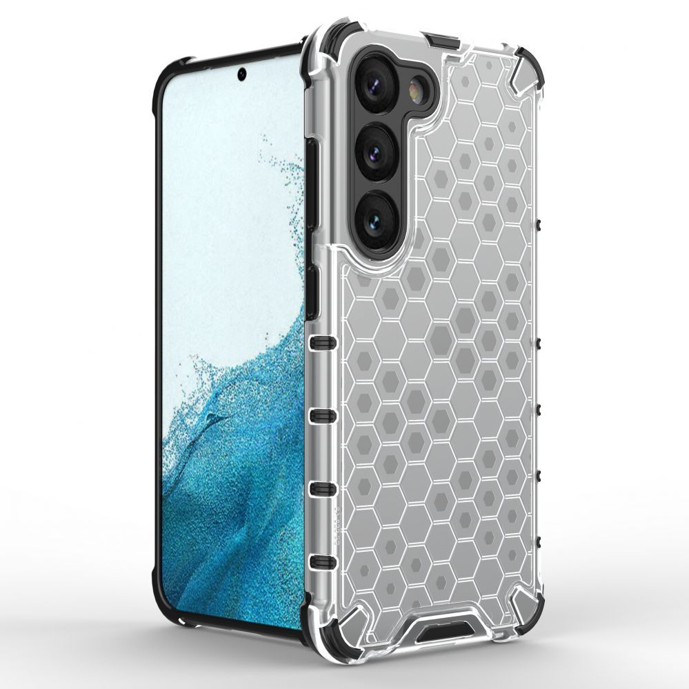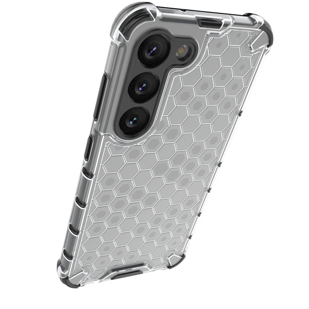 Honeycomb series case it is made of a thermoplastic and durable material that is arranged in the shape of a honeycomb. The cover is tailored to the Samsung Galaxy S23+ , perfectly protects the phone against damage due to falls or scratches (for example, by keys carried in a pocket). Raised edges around the screen and rear camera protect the phone from scratching these elements when it is placed on a flat surface. It has responsive buttons and cutouts for ports. Perfect for people who value style, quality and want to take care of their device.