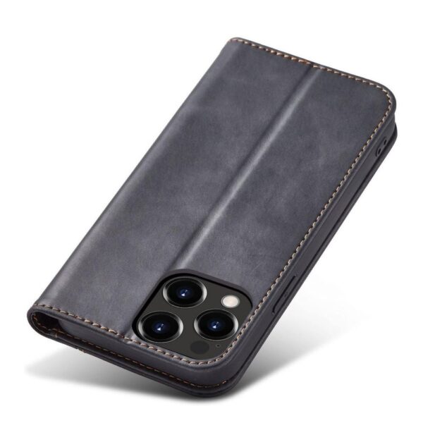 iPhone 14 Plus Magnet Fancy Case Flip Cover with Wallet Function and Kickstand Black