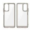- Hybrid case with a rigid back and a flexible frame.