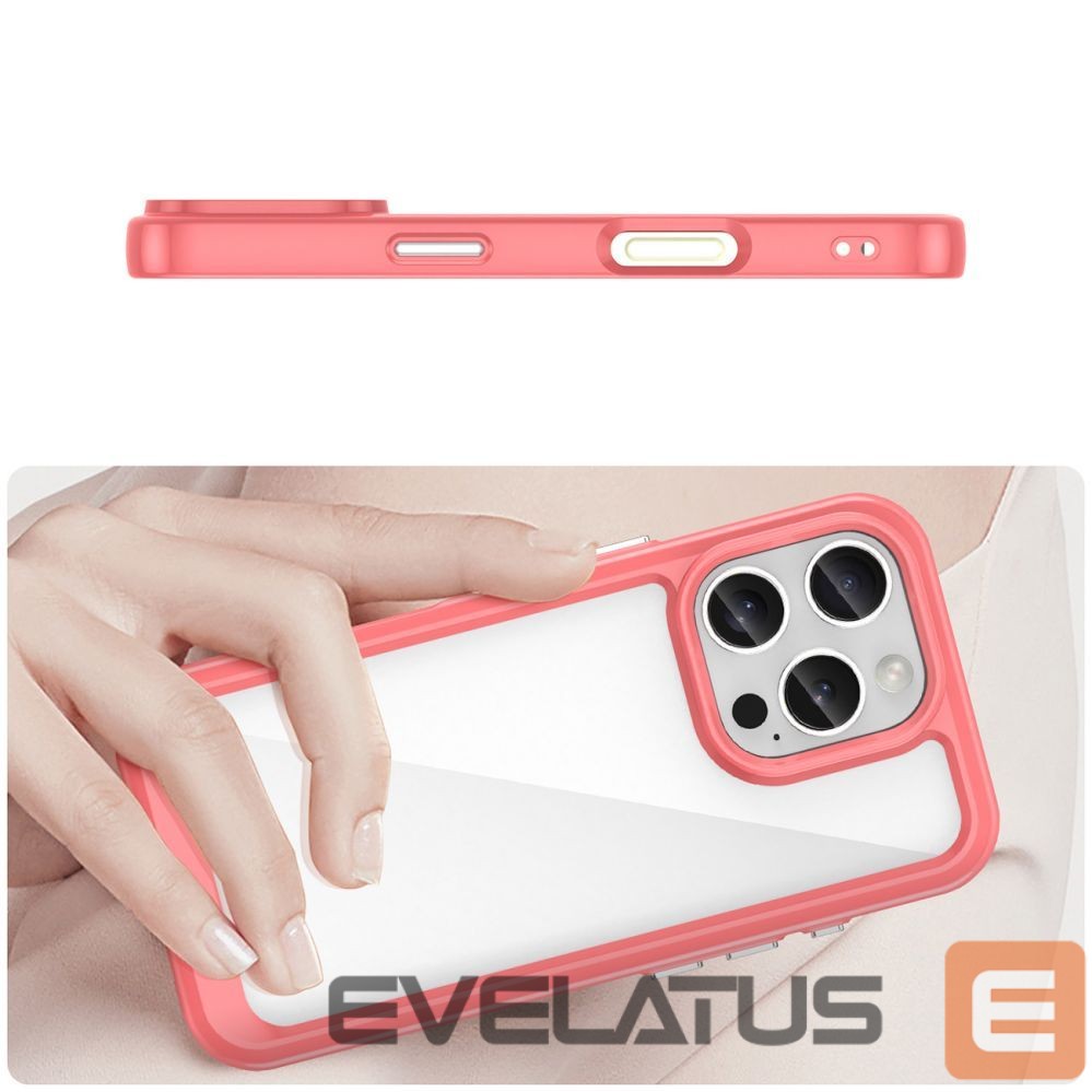- Hybrid case with a rigid back and flexible frame.