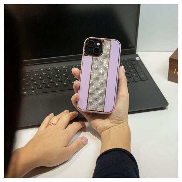 Tagakaaned iLike Apple iPhone 15 Diamonds and Leather Case Pink Sand
