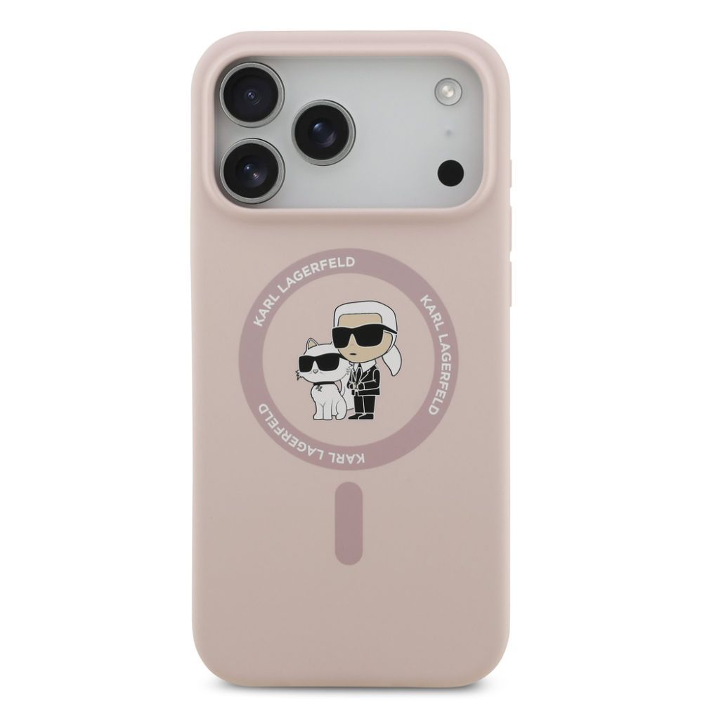 Tagakaaned Karl Lagerfeld Apple iPhone 17 Pro Max Liquid Silicone Karl and Choupette MagSafe Case Pink