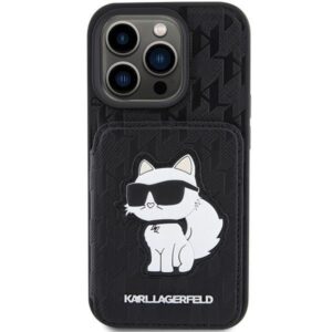 Tagakaaned Karl Lagerfeld Karl Lagerfeld Saffiano Cardslots and Stand Monogram Choupette Case for iPhone 15 Pro – Black