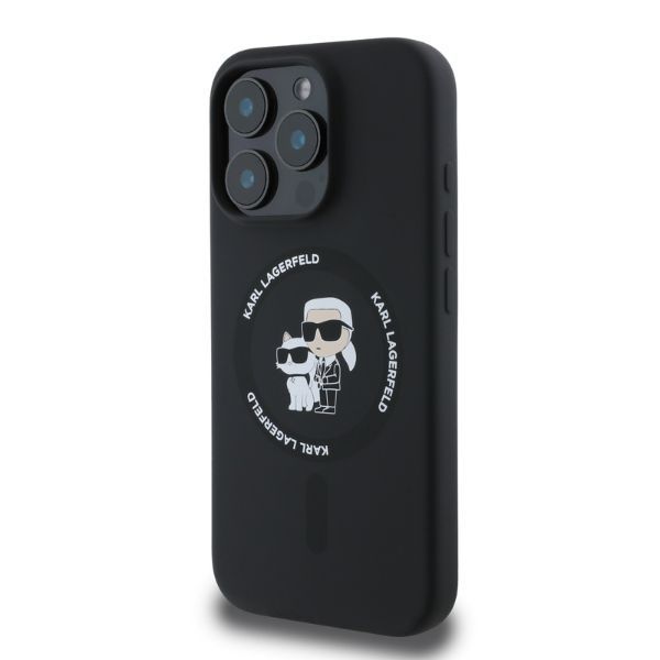 Tagakaaned Karl Lagerfeld Karl Lagerfeld Silicone Karl&Choupette Heads Ring MagSafe Case for iPhone 16 Pro Max – Black