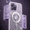 Something for a real geek! This transparent smartphone case is inspired by the texture of a printed circuit board. Made of solid plastic, effectively protects the device against the effects of falls. Supports MagSafe technology, making wireless charging possible. Metal buttons in a contrasting color make this case look very modern. The cover is adapted to the iPhone 14 Plus , perfectly protects the phone against damage due to falls or scratches (for example, by keys carried in a pocket). Raised edges around the screen and rear camera protect the phone from scratching these elements when it is placed on a flat surface. It has responsive buttons and cutouts for ports. Perfect for people who value style, quality and want to take care of their device.