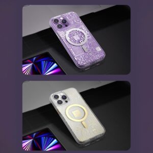 Something for a real geek! This transparent smartphone case is inspired by the texture of a printed circuit board. Made of solid plastic, effectively protects the device against the effects of falls. Supports MagSafe technology, making wireless charging possible. Metal buttons in a contrasting color make this case look very modern. The cover is adapted to the iPhone 14 Pro , perfectly protects the phone against damage due to falls or scratches (for example, by keys carried in a pocket). Raised edges around the screen and rear camera protect the phone from scratching these elements when it is placed on a flat surface. It has responsive buttons and cutouts for ports. Perfect for people who value style, quality and want to take care of their device.
