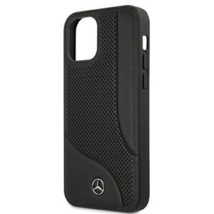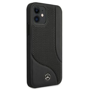 Tagakaaned Mercedes-Benz Mercedes Leather Perforated Area Case for iPhone 12 mini – Black